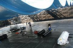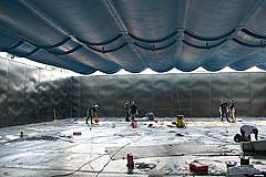 Bei dieser Variante wird die Decke vor der Betonage von oben verschweißt. Das Spart Zeit und verhindert ein Eindringen des Beton zwischen Schalung und Auskleidung / Abdichtung.